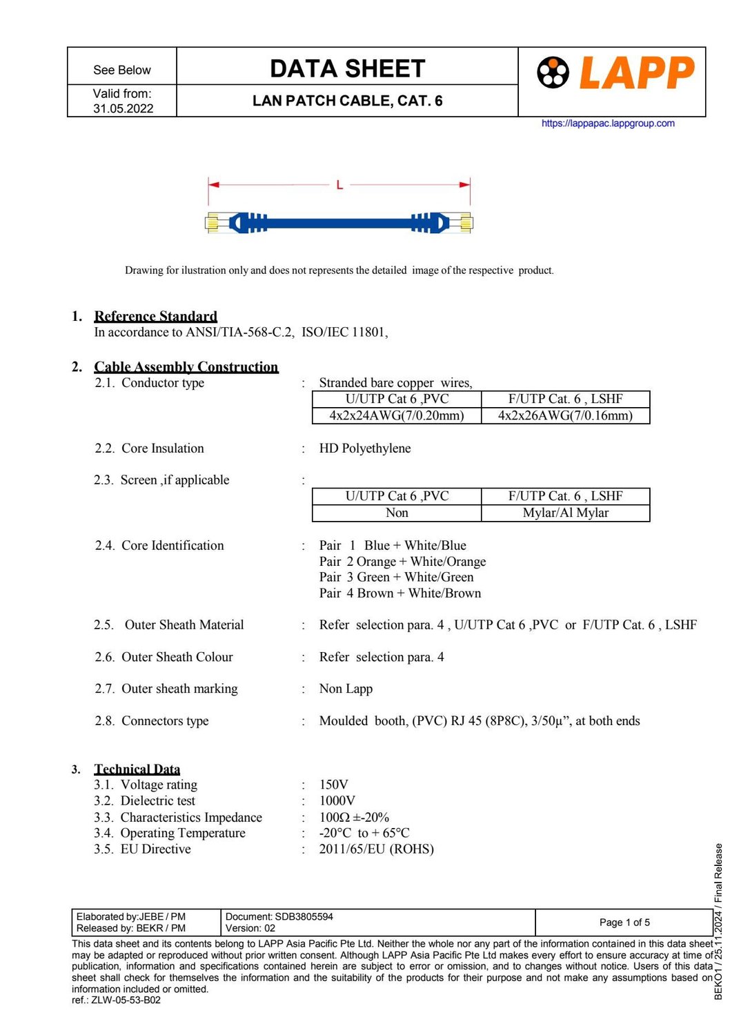 Each | 1+ S$67.400 (S$73.466)5+ S$64.220 (S$69.9998) | Cat5 | RJ45 Plug to RJ45 Plug | STP (Shielded Twisted Pair) | - | 2m | - | OLFLEX ETHERLINE Series | ||||||